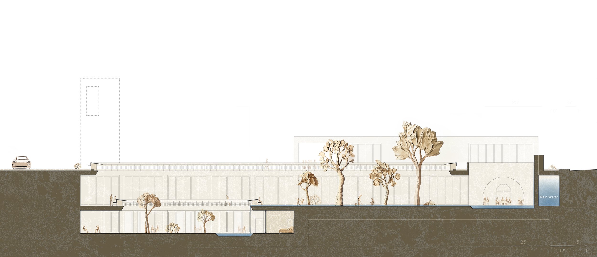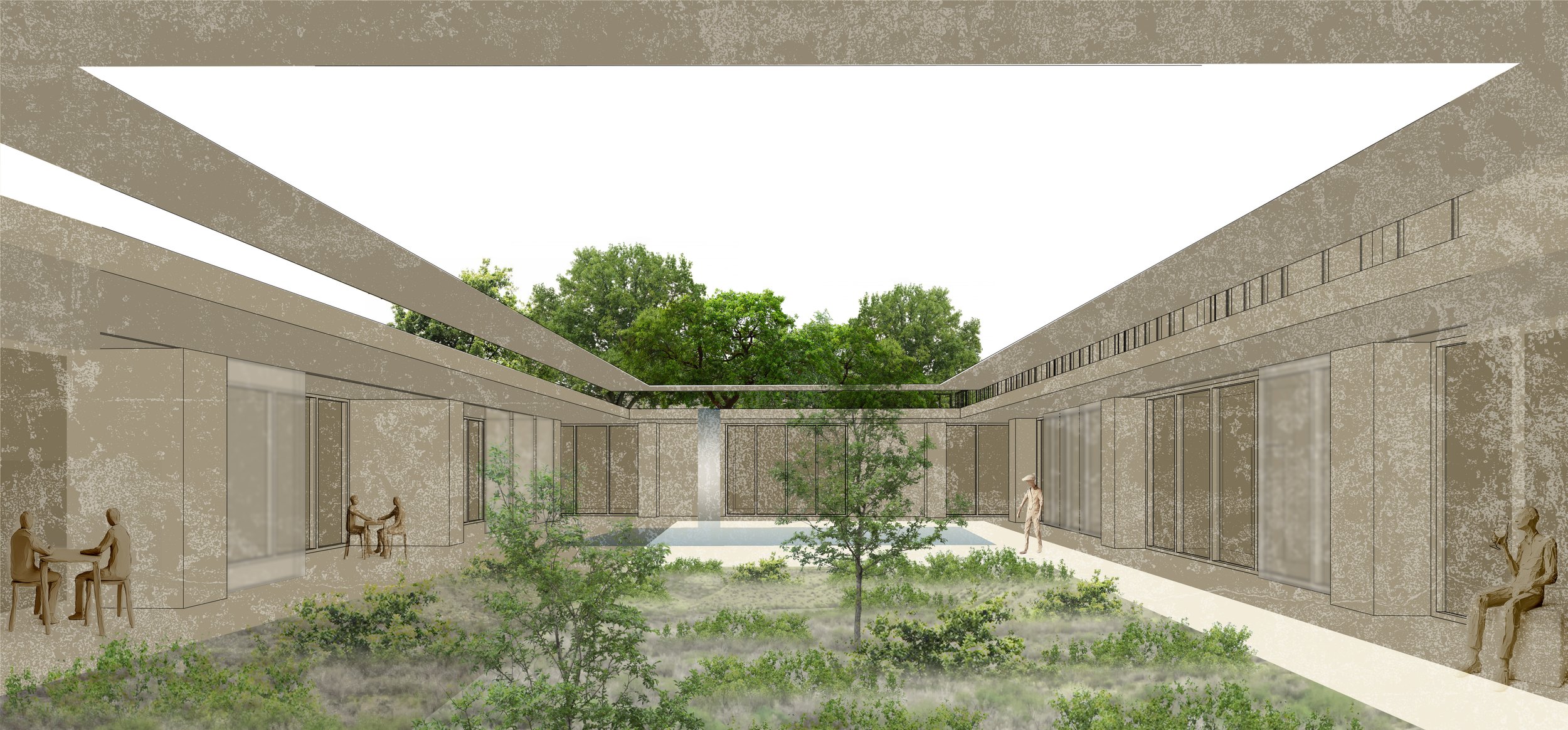 Set in the small West Texas town of Marathon, this graduate design studio explored architecture through the ordering of courtyard, garden, and room. Framed around the design of a contemporary caravanserai, the studio drew on precedents of desert settlement, collective dwelling, and massive construction to consider how architecture might provide both refuge and civic presence in an arid landscape.